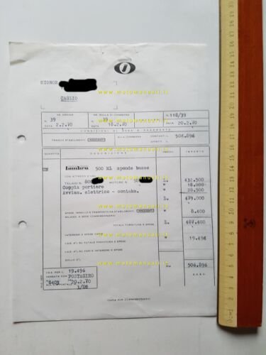 Innocenti Lambro 500 ML 1970 fattura acquisto originale