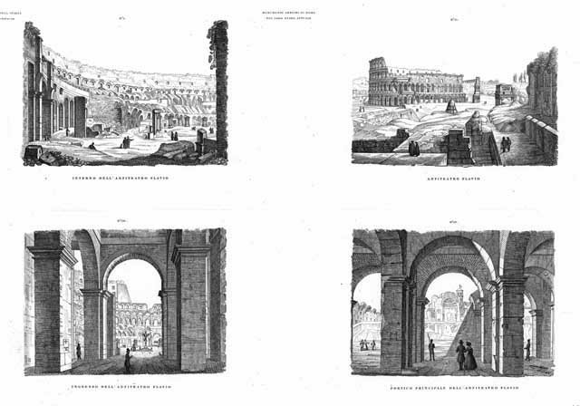 Quattro piccole vedute dell'anfiteatro, su unico foglio. Ognuna misura circa mm 130x180