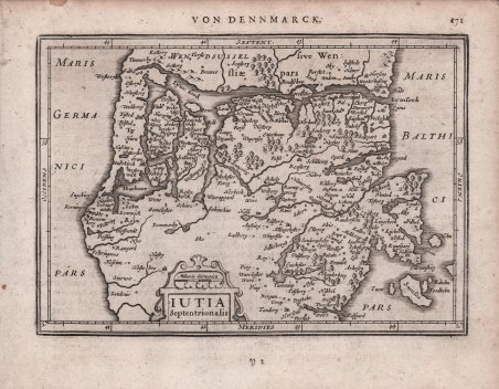 Mappa in miniatura tratta dall’Atlas minor, Das ist: Eine kurtze, jedoch gründliche Beschreibung der gantzen Weldt. ' Incisa da Abraham Goos o Pieter van den Keere, venne pubblicata per la prima volta da Johannes Janssonius nel 1628. L'Atlas Minor ' di Gerard Mercator fu concepito da Jodocus Hondius nel 1607 come edizione ridotta del popolare ' Atlas ' di Mercator in folio. L'Atlas Minor ' doveva essere più grande di un atlante tascabile, ma più piccolo di un atlante in folio, e aveva un prezzo adeguato a raggiungere una diversa clientela. Ci furono tre diverse edizioni dell'Atlas Minor ' pubblicate da autori diversi, ognuna con una nuova serie di mappe incise in rame. Jodocus Hondius pubblicò la prima edizione tra il 1607 e il 1621, e successivamente vendette le tavole in rame ad editori inglesi; tra il 1635-39 fu pubblicata un'edizione inglese dell’opera utilizzando molte delle tavole originali. Johannes Janssonius volle competere anche nel mercato dei “piccoli” atlanti e fece incidere nuove lastre di rame da Pieter van den Keere e Abraham Goos per la propria edizione dell’Atlas Minor, pubblicata in più lingue tra il 1628 e il 1651 La terza e ultima versione fu pubblicata da Jan Evertsz. Cloppenburch (o Cloppenburg) tra il 1630 e il 1734, con nuove mappe incise principalmente sempre da Pieter van den Keere. "Shortly after the publication of the big folio-atlases the need was apparantly felt for a smaller-sized atlas, one that would be handier, and, above all, cheaper, so that a larger public might have access to the use of maps. The publication of the ' Atlas Minor ' appeared to be a great success for Hondius; the first Latin edition was in great demand. The copperplates of the first atlases minor were most almost certainly engraved by Jodocus Hondius himself. After 1621, the copperplates of the ' Atlas Minor ' were sold to a London editor. Firstly, they appeared in ' Purchas his Pilgrinies, printed in 1625 by William Stansby for Henry Featherstone. Next they were used for the translation of the Mercator-atlas, printed in small folio under the title ' Historia mundi, or Mercators atlas, ' by Thomas Cotes for Michael Sparke and Samuel Cartwight in 1635". (cf. Koeman II Me 191). "As with the ' Theatrum ' of Abraham Ortelius, Jodocus Hondius planned a reduced size version of Gerard Mercator's folio atlas. Just one year after his first edition he published his Latin text ' Atlas Minor ' in collaboration with Jan Jansz. and Cormelis Claesz. The arrangement between these three is not understood clearly but Hondius is believed to have been the owner of the copperplates. Cartographically this is taken directly from the folio maps by Hondius in 1606 [.]. with the inevitable loss of detail due to the reduction” (cf. Burden, ' The Mapping of North America, 153). ' Johannes Janssonius (1588-1664) era figlio di un omonimo tipografo, editore e libraio di Arnhem. Nel 1612 sposò Elisabetta Hondius, figlia di Jodocus Hondius I, e nello stesso anno fondò una propria casa editrice ad Amsterdam. Alla morte di Jodocus I, nello stesso anno, iniziò ad aiutare la vedova di Hondius a continuare la pubblicazione dell'atlante di Mercatore e Hondius. Sia la vedova di Hondius, Colette, sia il figlio maggiore di Hondius, Jodocus II, morirono nel 1629; Janssonius unì quindi le forze con il figlio minore di Hondius, Henricus, per una revisione dell'Atlas Novus, a partire dal 1638. Acquaforte, in ottimo stato di conservazione. Dall’edizione tedesca dell’Atlas Minor, stampata ad Amsterdam nel 1648. Bibliografia Koeman IIIB, 352:33. A miniature map taken from ' Atlas minor, Das ist: Eine kurtze, jedoch gründliche Beschreibung der gantzen Weldt. ' Engraved by Abraham Goos or Pieter van den Keere, first issued by Johannes Janssonius in 1628. Mercator's ' Atlas Minor ' was conceived by Jodocus Hondius in 1607 as a reduced-sized edition of the popular folio-sized Mercator Atlas. The ' Atlas Minor ' was intended to be larger than a pocket atlas, yet smaller than the folio atlas, and were priced accordingly to reach a new market. There were three different editions of the ' Atlas Minor ' published by different authors, each with a new set of copperplates. Jodocus Hondius published the first edition from 1607-1621, and subsequently sold the copperplates to parties in England between 1621-1625, after which an English edition was published using many of the original plates in 1635-39. Johannes Jansson wanted to compete in the small atlas market as well, and had new copperplates engraved by Pieter van den Keere and Abraham Goos for his own edition published in multiple languages between 1628-51. The third and final edition was published by Jan Evertsz. Cloppenburch (or Cloppenburg) between 1630-1734 (some without text), with new maps engraved primarily by Pieter van den Keere. "Shortly after the publication of the big folio-atlases the need was apparantly felt for a smaller-sized atlas, one that would be handier, and, above all, cheaper, so that a larger public might have access to the use of maps. The publication of the ' Atlas Minor ' appeared to be a great success for Hondius; the first Latin edition was in great demand. The copperplates of the first atlases minor were most almost certainly engraved by Jodocus Hondius himself. After 1621, the copperplates of the ' Atlas Minor ' were sold to a London editor. Firstly, they appeared in ' Purchas his Pilgrinies, printed in 1625 by William Stansby for Henry Featherstone. Next they were used for the translation of the Mercator-atlas, printed in small folio under the title ' Historia mundi, or Mercators atlas, ' by Thomas Cotes for Michael Sparke and Samuel Cartwight in 1635". (cf. Koeman II Me 191). "As with the ' Theatrum ' of Abraham Ortelius, Jodocus Hondius planned a reduced size version of Gerard Mercator's folio atlas. Just one year after his first edition he published his Latin text ' Atlas Minor ' in collaboration with Jan Jansz. and Cormelis Claesz