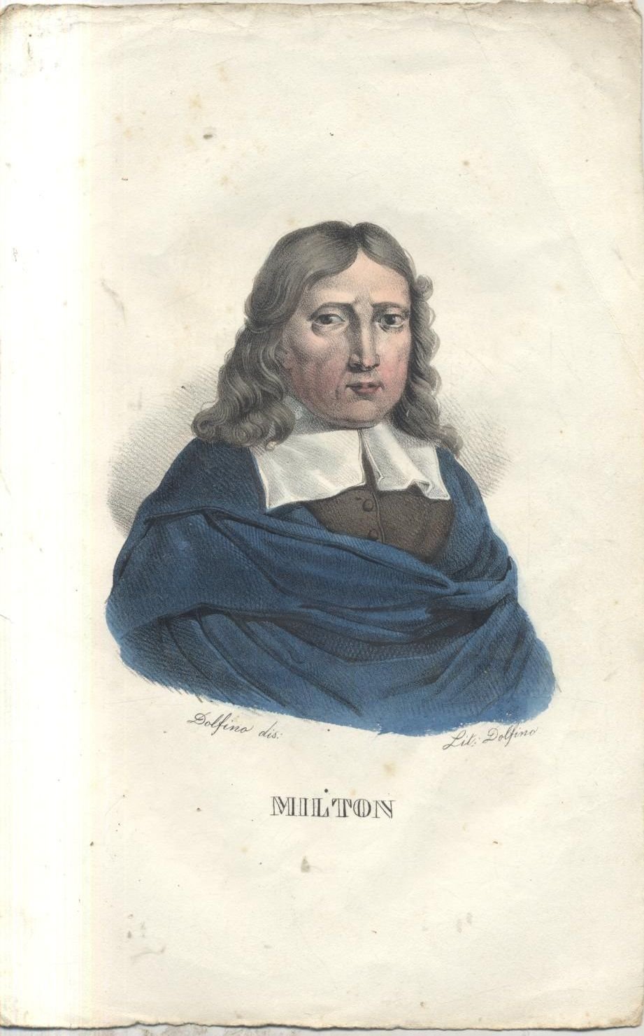 JOHN MILTON, litografia acquerellata ORIGINALE
