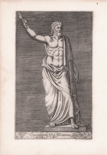 Opera tratta dall’Antiquarum statuarum urbis Romae…Io. Baptista de Cavalleris authore, la prima raccolta sistematica di illustrazioni di sculture antiche conservate nelle collezioni romane, che si deve all’opera dell’incisore e disegnatore Giovanni Battista Cavalieri (1525 circa - 1601) nella seconda metà del XVI secolo. Il repertorio, punto di riferimento per gli studi antiquari, conobbe grande diffusione e contribuì ad orientare l'interesse degli studiosi dell'epoca verso la statuaria antica. Il numero delle tavole, circa 50 nelle prime edizioni (databili circa al 1561/62) venne ampliato successivamente; prima del 1584 furono pubblicati i libri I e II con 100 incisioni numerate di sculture, organizzate per collezioni di appartenenza. Nel 1594 videro la luce il III e IV volume dell’opera, in cui comparvero altre 100 nuove tavole, stavolta ordinate in base all’iconografia dei soggetti. Le sculture sono raffigurate su sfondi neutri, privi di riferimenti architettonici. L’opera, con il titolo ' Antiquarum statuarum Urbis Romae primus, ' senza data, venne dedicata prima a Ottone Truchsess von Walburg – prima in qualità di diacono di S. Maria in Trastevere (1561/62) e poi di cardinale di Albano (1562/70). In seguito, con il titolo ' Antiquarum statuarum Urbis Romae primus et secundus liber ' il frontespizio reca la dedica al cardinale Ludovico Madruzzo, ed è databile al 1584/85. Nel 1594, con il titolo ' Antiquarum Statuarum Urbis Romae tertius et quartus liber, escono cento nuove tavole con dedica al cardinale G. Paluzzi degli Albertoni, del giugno 1593. Si tenga presente che, mentre nei primi due libri le statue erano pubblicate secondo le collezioni, nel terzo e quarto sono raggruppate per soggetto. La raccolta contiene, oltre alle incisioni di Giovanni Battista Cavalieri alcune tavole firmate da Cherubino Alberti, Orazio de Santis e altri famosi incisori dell’epoca. Giovanni Battista de Cavalieri o Cavalleris fu incisore, stampatore e editore. Originario di Villa Lagarina, nei pressi di Trento, risulta attivo a Venezia (dal 1559) e a Roma, dove nel 1577 apri una bottega nel quartiere Parione. Risiedeva nel vicolo di Palazzo Savelli, con uno studio vicino all’abitazione. Divenne cognato del celebre editore Lorenzo Vaccari. Realizzo lastre per Antonio Salamanca, Antonio Lafreri e Bartolomeo Faleti. Iniziò a pubblicare le sue opere intorno al 1560, ma sempre in partnership con altri: nel 1567 con Perino Zecchini e nel 1576 con Lorenzo Vaccari. Nel 1577 assunse uno stampatore, Francesco Cornuti, pubblicando opere di suoi contemporanei, tra cui Francesco Salviati, Daniele da Volterra, Raffaello, Michelangelo, Polidoro da Caravaggio, Livio Agresti e Baccio Bandinelli. ' Bulino, stampato su carta vergata coeva, in ottimo stato di conservazione. Bibliografia Thomas Ashby, ' Antiquae Statuae urbis Romae, in ' Papers of the British School at Rome, IX (1920), pp. 109-158; S. Weber, ' Artisti trentini ed artisti che operarono nel Trentino, Trento 1933, pp. 72 ss. Plate taken from the ' Antiquarum statuarum urbis Romae.Io. Baptista de Cavalleris authore, ' the first systematic collection of illustrations of ancient sculptures preserved in Roman collections, which is due to the work of the engraver and draftsman Giovanni Battista Cavalieri (1525 circa - 1601) in the second half of the 16th century. The repertory, a point of reference for antiquarian studies, was widely circulated and contributed to direct the interest of scholars of the time towards ancient statuary. The number of plates, about 50 in the first editions (datable to about 1561/62) was subsequently enlarged; before 1584 books I and II were published with 100 numbered engravings of sculptures, organized according to the collections they belonged to. In 1594 come to the light of the III and IV volume of the work, in which appeared other 100 new tables, this time ordered according to the iconography of the subjects. The sculptures are depicted on neutral backgrounds, without architectural references. The work, with the title ' Antiquarum statuarum Urbis Romae primus, ' undated, was first dedicated to Ottone Truchsess von Walburg - first as deacon of S. Maria in Trastevere (1561/62) and then as cardinal of Albano (1562/70). Later, with the title ' Antiquarum statuarum Urbis Romae primus et secundus liber, ' the frontispiece is dedicated to Cardinal Ludovico Madruzzo, and can be dated 1584/85. In 1594, with the title ' Antiquarum Statuarum Urbis Romae tertius et quartus liber, ' one hundred new plates were published with a dedication to Cardinal G. Paluzzi degli Albertoni, dated June 1593. Please note that, while in the first two books the statues were published according to collections, in the third and fourth are grouped by subject. The collection contains, in addition to the engravings of Giovanni Battista Cavalieri some plates signed by Cherubino Alberti, Orazio de Santis and other famous engravers of the time. Giovanni Battista de Cavalieri or Cavalleris was an engraver, printer and publisher. Born in Villa Lagarina, near Trento, is active in Venice (since 1559) and Rome, where in 1577 opened a workshop in the Parione district. He resided in the alley of Palazzo Savelli, with a studio near the house. He became brother-in-law of the famous publisher Lorenzo Vaccari. He made plates for Antonio Salamanca, Antonio Lafreri and Bartolomeo Faleti. He began to publish his works around 1560, but always in partnership with others: in 1567 with Perino Zecchini and in 1576 with Lorenzo Vaccari. In 1577 he hired a printer, Francesco Cornuti, publishing works by his contemporaries, including Francesco Salviati, Daniele da Volterra, Raphael, Michelangelo, Polidoro da Caravaggio, Livio Agresti and Baccio Bandinelli. Engraving, printed on contemporary laid paper, in excellent condition. Bibliografia Thomas Ashby, ' Antiquae Statuae urbis Romae, in ' Papers of the British School at Rome, IX (1920), pp. 109-158; S. Weber, ' Artisti