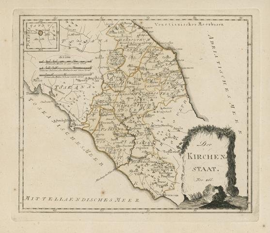 Carta geografica dello Stato della Chiesa. In alto a sx. entro riquadro il territorio di Benevento