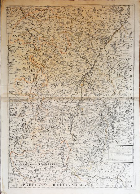 Carta geografica tratta dal ' Mercurio geografico overo Guida Geografica in tutte le parti del Mondo conforme le Tavole Geografiche del Sansone Baudran de Cantelli Data in luce con direttione, e cura di Gio. Giacomo de Rossi nella sua stamperia ' raccolta di carte edita a Roma tra il 1660 ed il 1730 dalla tipografia De Rossi - la datazione delle carte va dal 1669 al 1715 - la cui prima stesura si deve a Giovanni Giacomo de Rossi. Nel corso degli anni l’atlante fu arricchito da un numero sempre maggiore di carte nelle successive edizioni curate prima da Domenico de Rossi e poi dal figlio Filippo. Il ' Mercurio Geografico ' è una raccolta che raccoglie lavori di cartografi quali Michele Antonio Baudrand, Nicolas Sanson, Augustin Lubin, Filippo Titi, Giacomo Ameti, Giovanni Antonio Magini e Innocenzo Mattei e che ' contempla come "corpus" principale ' la grande produzione del geografo Giacomo Cantelli da Vignola. Le carte sono finemente copiate ed intagliate dai maggiori incisori dell'epoca tra i quali Falda, Widman, Barbey, Widman, Lhuillier, Donia, Mariotti. ' Cantelli era un geografo e cartografo, originario di Montorsello presso Vignola; compiti gli studi umanistici a Bologna, nel 1669, entrò ivi a servizio del marchese Obizzo da Ferrara come segretario, poi passò a Venezia e di là a Parigi, dove strinse rapporti coi maggiori geografi francesi del tempo, il Du Val, Nicola Sanson e specialmente Michel Antoine Baudrand, col quale rimase poi sempre in corrispondenza. Tornato a Bologna, fu per lunghi anni segretario di Rinieri Marescotti; ma, intorno al 1675 o poco dopo, si recò, forse più volte, a Roma, ed entrò in relazione con la celebre officina cartografica dei De Rossi, la quale pubblicò poi la massima parte delle sue carte geografiche. La sua fama di cartografo si era ormai consolidata, tanto che venne chiamato sia dal papa Innocenzo XI che dal duca di Modena e Reggio Francesco II d'Este, che lo desideravano entrambi come cartografo ufficiale. Scelse la corte di Francesco II, e in novembre 1685 fu nominato geografo di corte. Dal 1686 al 1689 eseguì numerose carte di paesi e territori europei. Costruì di sua mano un mappamondo e un globo celeste, che rimasero esposti per qualche tempo nell'atrio della Biblioteca Estense a Modena. Morì in Modena il 30 novembre 1695. Quasi tutte le carte furono inserite nel ' Mercurio Geografico, ' il notissimo atlante pubblicato a Roma dai De Rossi. Nella prima edizione del ' Mercurio Geografico ' furono pubblicate 19 sue carte, assieme ad altre del Sanson e del Baudrand. Nel 1692 uscì una seconda edizione in due volumi, che conteneva lavori da lui eseguiti (88 carte, intagliate al bulino dall'incisore Antonio Barbey). Incisione in rame, minimo foxing, per il resto in ottimo stato di conservazione. Bibliografia cfr. R. Almagià, ' Studi storici di cartografia napoletana, in “Archivio storico per le province napoletane”, 38 (1913), p. 645; A. Bonazzi, ' Il Mercurio geografico: il gioco e la differenza, in “Giacomo Cantelli: geografo del Serenissimo”, Bologna, 1995, p. 37-44 e 150-152; Bagrow ' 268; ' Phillips ' I 254-255; Shirley BL I, pp. 868-874. Map taken from ' Mercurio geografico overo Guida Geografica in tutte le parti del Mondo conforme le Tavole Geografiche del Sansone Baudran de Cantelli Data in luce con direttione, e cura di Gio. ' Giacomo de Rossi nella sua stamperia ' collection of maps published in Rome between 1660 and 1730 by the typography De Rossi - the date of the maps goes from 1669 to 1715 - whose first edition is due to Giovanni Giacomo de Rossi. Over the years the atlas was enriched by an increasing number of maps in subsequent editions edited first by Domenico de Rossi and then by his son Filippo. The ' Mercurio Geografico ' is a collection that brings together works by cartographers such as Michele Antonio Baudrand, Nicolas Sanson, Augustin Lubin, Filippo Titi, Giacomo Ameti, Giovanni Antonio Magini and Innocenzo Mattei, and which includes as its main "corpus" the great production of the geographer Giacomo Cantelli da Vignola. The maps are finely copied and engraved by the major engravers of the time including Falda, Widman, Barbey, Widman, Lhuillier, Donia, Mariotti. ' Cantelli was a geographer and cartographer, a native of Montorsello near Vignola; duties his humanistic studies in Bologna, in 1669, he entered the service of Marquis Obizzo da Ferrara there as secretary, then went to Venice and from there to Paris, where he formed relations with the leading French geographers of the time, Du Val, Nicola Sanson and especially Michel Antoine Baudrand, with whom he then remained in constant correspondence. Returning to Bologna, he was for long years secretary to Rinieri Marescotti; but, around 1675 or shortly thereafter, he went, perhaps several times, to Rome, and entered into relations with the famous De Rossi cartographic workshop, which then published most of his maps. By this time his reputation as a cartographer had been established, so much so that he was called upon by both Pope Innocent XI and the Duke of Modena and Reggio Francesco II d'Este, both of whom wanted him as their official cartographer. He chose the court of Francesco II, and in November 1685 he was appointed court geographer. From 1686 to 1689 he executed numerous maps of European countries and territories. He constructed by his own hand a world map and a celestial globe, which remained on display for some time in the atrium of the Biblioteca Estense in Modena. He died in Modena on November 30, 1695. Almost all the maps were included in the ' Mercurio Geografico, the well-known atlas published in Rome by the De Rossi family. The first edition of the ' Mercurio Geografico ' published 19 of his maps, along with others by Sanson and Baudrand. A two-volume second edition came out in 1692, which contained work he had done (88 maps, engraved by Antonio Barbey). Copperplate, some foxing, otherwise very good condition. Literature cfr. R. Almagià,