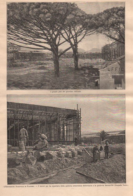 L'Esposizione Nazionale di Palermo - I grandi pini del giardino centrale - I lavori per la copertura della