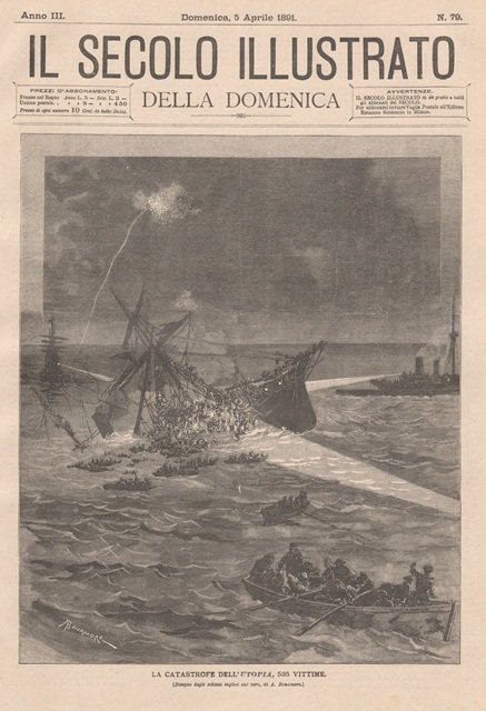 Veduta della tragica vicenda della nave affondata al largo di Gibilterra il 17 marzo del 1891