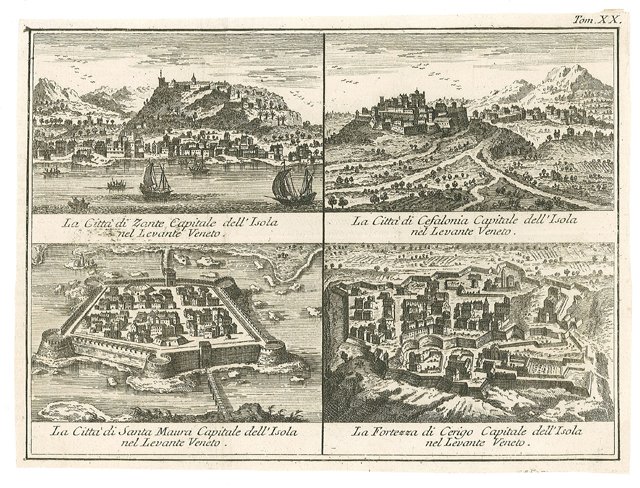 La Città di Zante . - La Città di Cefalonia . - La Città di Santa Maura . - La Fortezza di Cerigo .