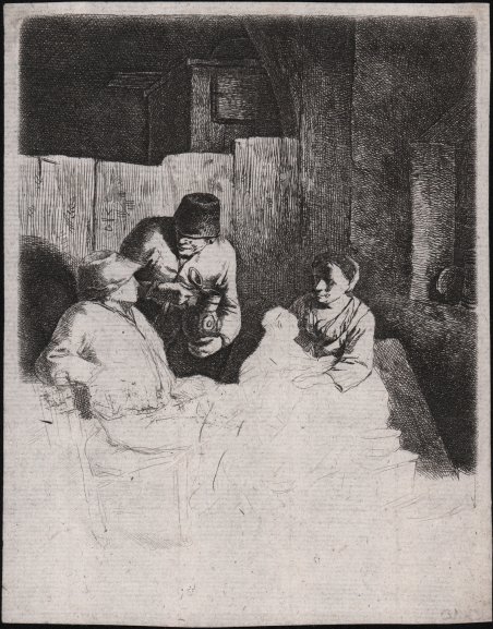 Acquaforte, priva della firma. Esemplare del secondo stato di due. Cornelis Pietersz Bega è stato un pittore e incisore olandese. Ha vissuto e lavorato a Haarlem, fu il figlio dello scultore e orafo Pieter Jansz Begijn. Sua madre Maria era la figlia del pittore Cornelis van Haarlem. Assunse il nome Bega quando iniziò la professione. Era un allievo di Adriaen van Ostade, di cui ripeté con stile più pesante i temi e i caratteri, producendo in particolar modo scene dal soggetto simile, tipicamente gruppi di pochi contadini, spesso in ambienti interni o in scene familiari o figure fantasiose come L’Alchimista e l’Astrologo. Non disdegnò opere dal carattere umoristico-satirico, indirizzate soprattutto alla classe borghese del suo tempo. La produzione delle sue opere datate ha inizio nel 1652 e nel 1654 entrò a far parte della Corporazione di San Luca. ' Bellissima prova, impressa su carta vergata coeva priva di filigrana, con sottili margini, tracce di piega di carta diagonale, per il resto in ottimo stato di conservazione.Bibliografia Dutuit, Hollstein 31 II/II. ' Etching, without signature. Example in the second state of two. Magnificent work, printed on contemporary laid paper without watermark, thin margins, signs of fold on diagonal line on verso, in general in good condition. Cornelis Pietersz Bega, or Cornelis Pietersz Begijn (1631/32 – 1664) was a Dutch painter and engraver. Bega was born, lived and worked in Haarlem and was the son of sculptor and goldsmith Pieter Jansz. Begijn. He was a student of Adriaen van Ostade, and produced genre scenes of similar subjects, typically groups of a few peasant figures, often in interior settings, or fanciful figures such as The Alchemist or The Astrologer. His dated works begin in 1652, and in 1654 he was accepted into the Haarlem Guild of St. Luke, dying only ten years later, which according to Houbraken was due to the plague. ' Literature Dutuit, Hollstein 31 II/II. Cfr.