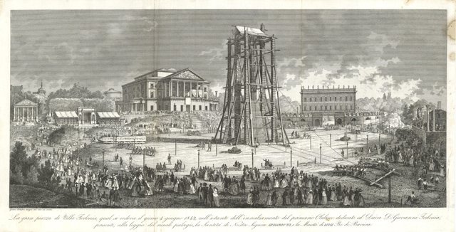 La gran piazza di Villa Torlonia, qual si vedeva il giorno 4 giugno 1842, nell'istante dell'innalzamento del primario Obelisco.la Maestà di Luigi Re di Baviera