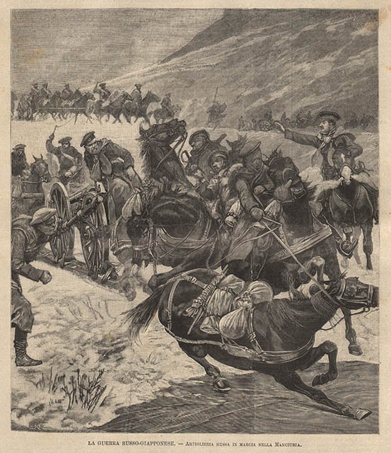 La guerra russo-giapponese - Artiglieria russa in marcia nella Manciuria