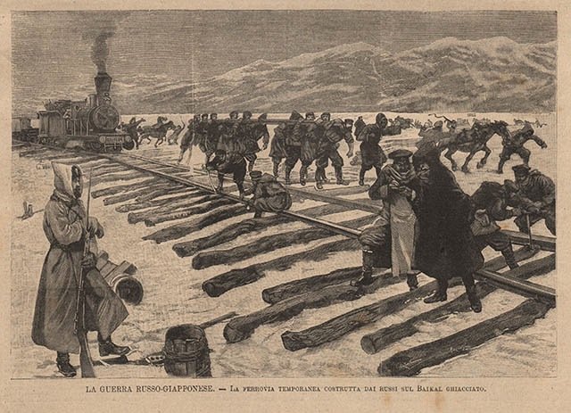 La guerra russo-giapponese - La ferrovia temporanea costrutta dai russi sul Baikal ghiacciato