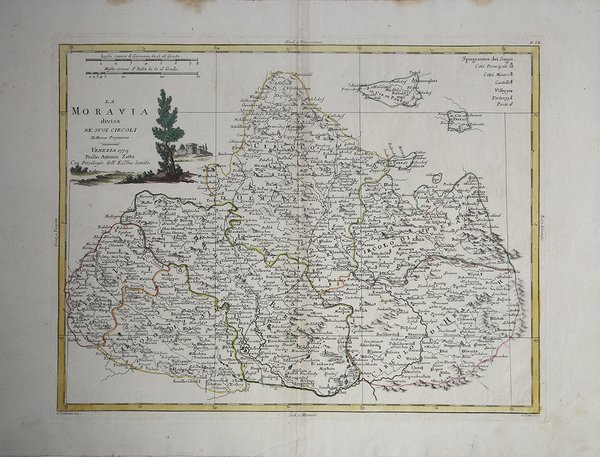 Carta geografica tratta dall’Atlante novissimo, illustrato ed accresciuto sulle osservazioni e scoperte fatte dai più celebri e più recenti geografi. Stampato in quattro volumi da Antonio Zatta tra il 1779 ed il 1785. Atlante fra i più belli e completi mai pubblicati in Italia nel XVIII secolo, l'opera più famosa dello Zatta. L’Atlante Novissimo, come si specifica anche nel titolo, è “accresciuto sulle osservazioni scoperte fatte dai più celebri e più recenti geografi”. Tra le novità più significative vi è la comparsa delle nuove isole scoperte nell'Oceano Pacifico da James Cook e la prima carta italiana della Nuova Zelanda. Le illustrazioni furono ' ideate e disegnate dai suoi collaboratori Giovanni Marco Pitteri, Anton Friedrich Busching, Pietro Antonio Novelli ed incise da Giuliano Zuliani. Il primo tomo dell’atlante è introdotto da un breve saggio di geografia generale dove l’autore definisce in modo sintetico e preciso gli elementi che compongono i reticoli eclittico ed equatoriale usati nelle tavole. Interessante la sezione dove si sofferma ' a descrivere il fenomeno della precessione degli equinozi e quello della variazione ciclica dell'obliquità dell'eclittica. Acquaforte, stampata su carta vergata coeva, coloritura coeva dei contorni, in buone condizioni. Map from the Atlante novissimo, illustrato ed accresciuto sulle osservazioni e scoperte fatte dai più celebri e più recenti geografi. Printed in four volumes by Antonio Zatta between 1779 and 1785. ' Atlas among the most beautiful and complete ever published in Italy in the eighteenth century, the most famous work of Zatta. The Atlante Novissimo, as also specified in the title, is “increased on the observations made by the most famous and most recent geographers”. Among the most significant innovations there is the appearance of the new islands discovered in the Pacific Ocean by James Cook and the first Italian map of New Zealand. The illustrations were designed and drawn by his collaborators Giovanni Marco Pitteri, Anton Friedrich Busching, Pietro Antonio Novelli and engraved by Giuliano Zuliani. The first volume of the atlas is introduced by a brief essay of general geography where the author defines in a concise and precise way the elements that make up the ecliptic and equatorial grids used in the tables. Interesting is the section where he pauses to describe the phenomenon of precession of the equinoxes and the cyclical variation of the obliquity of the ecliptic. Etching, printed on contemporary laid paper, contemporary outline coloring, in good condition. Cfr.