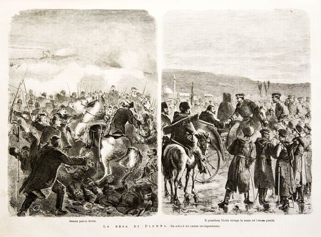 La resa di Plewna / Osman Pascià ferito.- Il granduca Nicola stringe la mano ad Osman Pascià