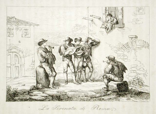 Raffigurazione di una romantica serenata, per le vie di Roma