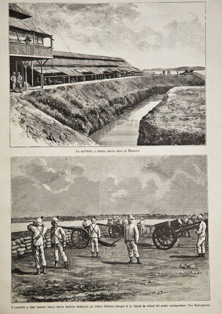 Le batterie a difesa della diga di Massaua / I cannoni a tiro rapido della regia marina sbarcati al forte Gherar