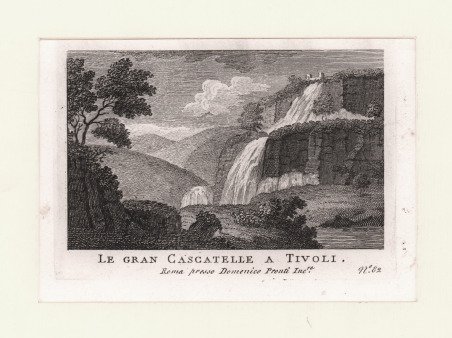 Veduta tratta dalla celebre ' NUOVA RACCOLTA DI 100 VEDUTINE ANTICHE DELLA CITTÀ DI ROMA E SUE VICINANZE INCISE A BULLINO DA DOMENICO PRONTI. ROMA, PRESSO IL SUD.O INCISORE INCONTRO LA CHIESA DEI GRECI ' (senza data ma 1795 circa). Si tratta di una raccolta di incisioni di formato in 4°, suddivisa in 2 volumi in un tomo, suddivisi da altrettanti frontespizi incisi con veduta dei monumenti di Roma. Le illustrazioni sono numerate 1-100 nel primo volume, che si riferisce ai monumenti antichi, incise su rame, 2 per ogni foglio. Il secondo volume, su “Roma moderna”, contiene tavole numerate 1-70, incise su rame, 2 per ogni foglio. Le incisioni sono tutte opera di Domenico Pronti, molto noto soprattutto per le sue raccolte di vedute della Città Eterna ad uso dei turisti del Grand Tour, e editore in proprio dei suoi album. La datazione suggerita dalle bibliografie è di circa 1795; le vedute sono basate su modelli di Giuseppe Vasi e Giovan Battista Piranesi. Acquaforte, impressa su carta vergata coeva, in ottimo stato di conservazione. View taken from the famous ' NUOVA RACCOLTA DI 100 VEDUTINE ANTICHE DELLA CITTÀ DI ROMA E SUE VICINANZE INCISE A BULLINO DA DOMENICO PRONTI. ROMA, PRESSO IL SUD.O INCISORE INCONTRO LA CHIESA DEI GRECI ' (without date but about 1795). This is a collection of engravings in 4° format, divided into 2 volumes in one tome, divided by as many engraved frontispieces with views of the monuments of Rome. The illustrations are numbered 1-100 in the first volume, which refers to ancient monuments, engraved on copper, 2 for each sheet. The second volume, on "Modern Rome", contains plates numbered 1-70, engraved on copper, 2 for each sheet. The engravings are all the work of Domenico Pronti, well known for his collections of views of the Eternal City for use by tourists on the Grand Tour, and self-publisher of his albums. The date suggested by the bibliographies is about 1795; the views are based on models by Giuseppe Vasi and Giovan Battista Piranesi. Etching, impressed on contemporary paper, in excellent condition. Cfr.
