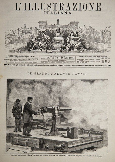 Le grandi manovre navali / Cannone automatico “Maxim” montato sui pontoni a difesa del golfo della Spezia
