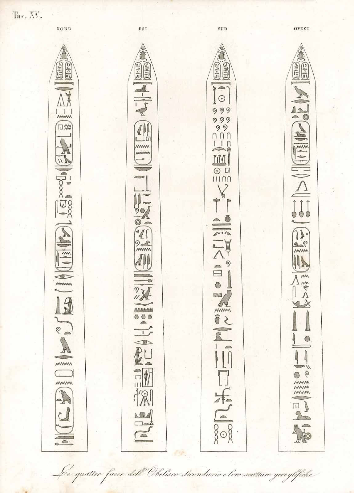 Le quattro facce dell'Obelisco secondario e loro scritture geroglifiche