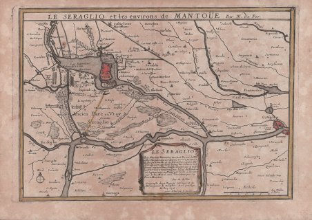 Carta geografica tratta da "L'Atlas Curieux ou Le Monde Représenté dans des Cartes Générales et Particulières du Ciel et de la Térre" stampato a Parigi da Nicola De Fer tra il 1700 ed il 1705.L'Atlas Curieux è una sorta di enciclopedia geografica, che uscì in sei parti annuali tra il 1700 e il 1705.Le tavole sono basate sulle nuove osservazioni dell'Académie des Sciences e sono disegnate e realizzate dal de Fer con l'aiuto di Philipe de La Hire.Incisione in ram,e in buono stato di conservazione.Literature: McLaughlin 1334; Nordenskiöld 72 (re. 1725 ed.); Pastoureau Fer I A. a-d; Phillips 532; Tooley p. 42. Map taken from "L'Atlas Curieux ou Le Monde Représenté dans des Cartes Générales et Particulières du Ciel et de la Térre" printed in Paris by Nicolas De Fer.The "Atlas Curieux" is geographic encyclopedia of images and maps. issued in six annual parts from 1700-1705, the maps are based on the new observations of the Académie des Sciences, and drawn up with the assistance of Philipe de La Hire.Copperplate, good condition.Literature: McLaughlin 1334; Nordenskiöld 72 (re. 1725 ed.); Pastoureau Fer I A. a-d; Phillips 532; Tooley p. 42. Cfr. D. Ferrari, "Mantova nelle stampe", 50