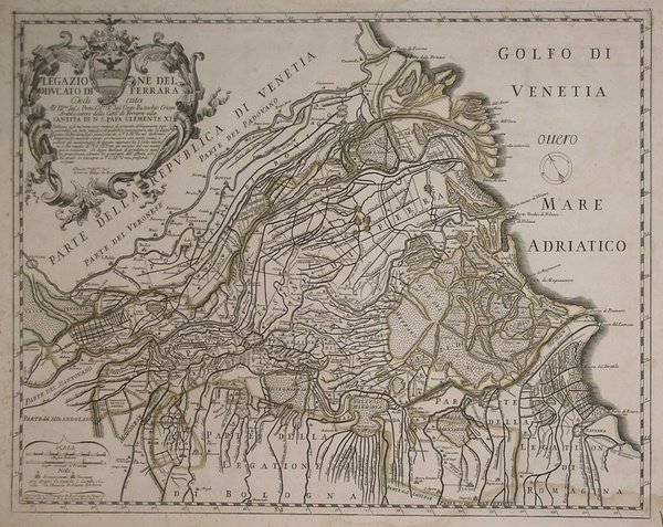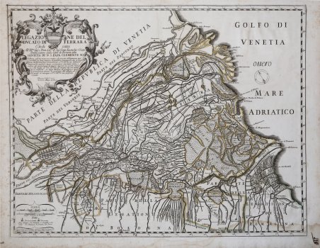 Carta geografica tratta dal ' Mercurio geografico overo Guida Geografica in tutte le parti del Mondo conforme le Tavole Geografiche del Sansone Baudran de Cantelli Data in luce con direttione, e cura di Gio. Giacomo de Rossi nella sua stamperia ' raccolta di carte edita a Roma tra il 1660 ed il 1730 dalla tipografia De Rossi ' - la datazione delle carte va dal 1669 al 1715 - la cui prima stesura si deve a Giovanni Giacomo de Rossi. Nel corso degli anni l’atlante fu arricchito da un numero sempre maggiore di carte nelle successive edizioni curate prima da Domenico de Rossi e poi dal figlio Filippo. Il ' Mercurio Geografico ' è una raccolta che raccoglie lavori di cartografi quali Michele Antonio Baudrand, Nicolas Sanson, Augustin Lubin, Filippo Titi, Giacomo Ameti, Giovanni Antonio Magini e Innocenzo Mattei e che ' contempla come "corpus" principale ' la grande produzione del geografo Giacomo Cantelli da Vignola. Le carte sono finemente copiate ed intagliate dai maggiori incisori dell'epoca tra i quali Falda, Widman, Barbey, Widman, Lhuillier, Donia, Mariotti. ' Incisione in rame, in buono stato di conservazione. Bibliografia cfr. R. Almagià, ' Studi storici di cartografia napoletana, in “Archivio storico per le province napoletane”, 38 (1913), p. 645; A. Bonazzi, ' Il Mercurio geografico: il gioco e la differenza, in “Giacomo Cantelli: geografo del Serenissimo”, Bologna, 1995, p. 37-44 e 150-152; Bagrow ' 268; ' Phillips ' I 254-255; Shirley BL I, pp. 868-874; ' Alberghini, Ferrara. La storia di un territorio in una collezione di mappe e vedute dal XV al XX secolo, 2008, p.56. ' Map taken from ' Mercurio geografico overo Guida Geografica in tutte le parti del Mondo conforme le Tavole Geografiche del Sansone Baudran de Cantelli Data in luce con direttione, e cura di Gio. ' Giacomo de Rossi nella sua stamperia ' collection of maps published in Rome between 1660 and 1730 by the typography De Rossi - the date of the maps goes from 1669 to 1715 - whose first edition is due to Giovanni Giacomo de Rossi. Over the years the atlas was enriched by an increasing number of maps in subsequent editions edited first by Domenico de Rossi and then by his son Filippo. The ' Mercurio Geografico ' is a collection that brings together works by cartographers such as Michele Antonio Baudrand, Nicolas Sanson, Augustin Lubin, Filippo Titi, Giacomo Ameti, Giovanni Antonio Magini and Innocenzo Mattei, and which includes as its main "corpus" the great production of the geographer Giacomo Cantelli da Vignola. The maps are finely copied and engraved by the major engravers of the time including Falda, Widman, Barbey, Widman, Lhuillier, Donia, Mariotti. ' Copper engraving, in good condition. Literature cfr. R. Almagià, ' Studi storici di cartografia napoletana, in “Archivio storico per le province napoletane”, 38 (1913), p. 645; A. Bonazzi, ' Il Mercurio geografico: il gioco e la differenza, in “Giacomo Cantelli: geografo del Serenissimo”, Bologna, 1995, p. 37-44 e 150-152; Bagrow ' 268; ' Phillips ' I 254-255; Shirley BL I, pp. 868-874. Cfr.