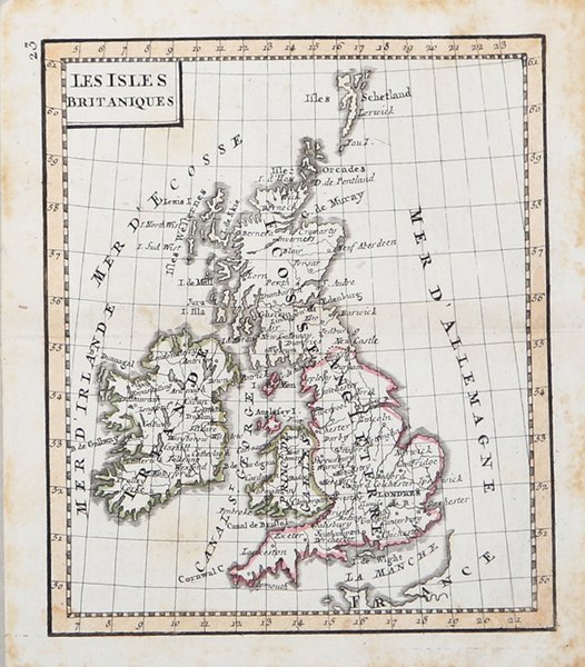 La carta proviene dall'Atlas Géographique, dressé sur les meilleures Cartes de ces derniers tems, à l'usage des Ecoles, et de toute la Jeunesse des deux Sexes, pubblicato a Venezia, da Giuseppe Remondini, nel 1801. L'atlante si compone di 60 tavole e riprende nel formato, nel titolo e nel frontespizio figurato un analogo atlante realizzato da Giovanni Antonio Rizzi Zannoni (1736-1814) nel 1762. Giuseppe Remondini apparteneva a una famiglia originaria di Bassano, centro che nel corso del XVIII secolo aveva visto fiorire un discreto numero di stamperie. I Remondini divennero, nella seconda metà del XVIII secolo, sotto la direzione di Giuseppe, una delle prime industrie produttrici di carta stampata in Europa; nei loro stabilimenti si produceva di tutto: dalla carta per parati suppone sia stata una loro invenzione che si alle immagini sacre e popolari, dai testi scientifici ai più raffinati lavori editoriali. Acquaforte, coloritura coeva, leggere ossidazioni, per il resto in ottimo stato di conservazione. Non comune. The map is from the ' Atlas Géographique, dressé sur les meilleures Cartes de ces derniers tems, à l'usage des Ecoles, et de toute la Jeunesse des deux Sexes, published in Venice, by Giuseppe Remondini, in 1801. The Atlas consists of 60 plates and resumes in format, title and figured frontispiece a similar atlas made by Giovanni Antonio Rizzi Zannoni (1736-1814) in 1762. Giuseppe Remondini belonged to a family originally from Bassano, a center that had seen a fair number of print shops flourish during the 18th century. The Remondinis became, in the second half of the 18th century, under Giuseppe's direction, one of the first manufacturers of printed paper in Europe; everything was produced in their factories: from wallpaper supposedly their own invention, which went to sacred and popular images, from scientific texts to the finest editorial works. Etching, contemporary coloring, slight oxidation, otherwise in very good condition. ' Uncommon. Cfr.