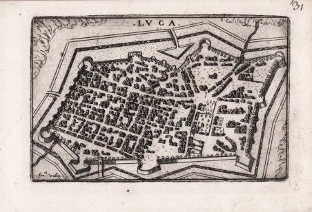 Veduta tratta dalla "Descrizione La Raccolta di le piu illustri et famose citta di tutto il mondo", edita da Francesco Valegio a Venezia verso la fine del’ 500, comprende circa 322 piante e vedute delle principali città del mondo conosciuto. Di questo volume si conservano diversi esemplari, tutti con numero variabile di incisioni e tutti privi di un indice a stampa. Inoltre gran parte delle tavole contenute nella raccolta del Valegio furono inserite nella "Nuova raccolta di tutte le più illustri et famose città di tutto il mondo" curata da Donato Rasciotti ed edita alla fine del sedicesimo secolo. Tuttavia è persino incerto quale delle due raccolte venne per prima alla luce ed ignote sono le datazioni di tutte le tirature conosciute. Molte delle immagini riprendono modelli figurativi apparsi nei primi volumi del Civitates Orbis Terrarum editi tra il 1572 ed il 1588 (e successivamente ristampati sino al 1617) dai cartografi Georg Braun e Franz Hogenberg. Incisione in rame, al bulino, con margini, in ottimo stato di conservaziona. Molto rara. La Raccolta di le piu illustri et famose citta di tutto il mondo, published by Francesco Valegio in Venice towards the end of the XVI century, containing about 322 plans and views of the main cities of the World. There are different examples of this work, every one with a different number of plates and without an index. Many of these plates have been afterwards included in Donato Rasciotti's Nuova raccolta di tutte le più illustri et famose città di tutto il mondo, printed at the end of the XVI century. It is still, however, quite unclear whether Valegio or Rasciotti published first his collection. Francesco Valegio was born in Bologna around 1560, even though some say he might have been born in Verona; as engrver and calcographer, he worked in Venice, very often in association with other publishers. The plates of his Raccolta, which can be considered his most important work, do not bear any date, except for those of Algeri, Costantinopoli and Rodi, signed by Martino Rota, dated 1572. The city plans signed by Rota, (engraver born in Sebenico who worked in Venice until 1573), are the most ancient core of the work, which make us think that this work has been planned by Rota himself. Many plates recall the figurative models of the Civitates Orbis Terrarum printed between 1572 and 1588 (afterwards reissued until 1617) by Georg Braun and Franz Hogenberg. It is therfore possible that Valegio started to select the plates by Rota around 1580 and afterwards enlarged his collection at the end of the century. 112 plates bear Valegio's signature or monogram and as many can be ascribed to him; 69 have been ascribed to an unkwown artist. The collection was extremely successful and became the base for the following copies. Valegio's plate have been reissued by Raffaello Savonarola (Lasor a Varea) in the Universus Terrarum Orbis in 1 713. There are 52 plates depicting the peninsula. A distinctive element of this corpus is the presence of a number (from 1 to 60) with ancient ink, on the white upper margin; that makes us presume that these examples come from another collection of Valegio, "Raccolta delle più famose Città di Italia", which he created by changing the front page of his previuos publication. Copper engravings, particularly rich and with good contrast, in excellent condition. Very rare. Cfr.