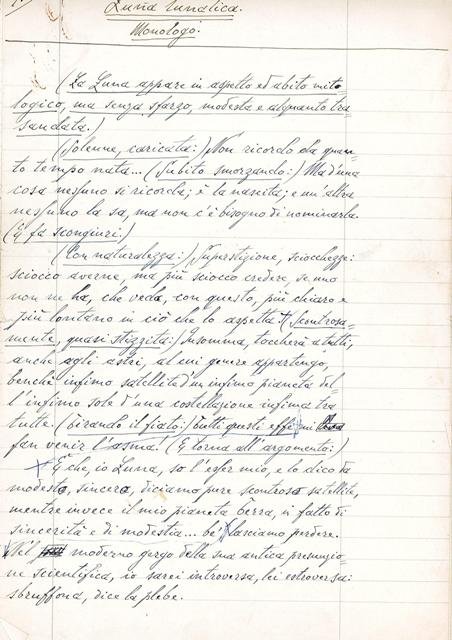 Copione di Luna lunatica - Monologo manoscritto in 14 fogli con correzioni, aggiunte e indicazioni di interpretazione, firmato da Riccardo Bacchelli, scritto per la nota attrice Paola Borboni