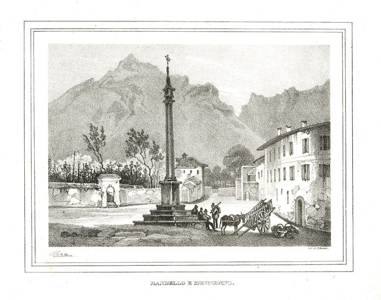 Stampa antica ed originale con ceduta della piazzetta di Mandello