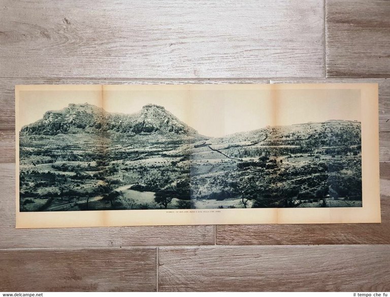 Rara stampa estratta da pubblicazione autentica del 1936 Stampa enorme e da parete Il Maresciallo Pietro Badoglio e la Guerra d'Etiopia nel 1936 Tembien Le due cime della Uorc Amba Dimensioni: Cm 64,00 x 25,00 Codice prodotto: 1909-075 La guerra d'Etiopia (nota anche come campagna d'Etiopia), fu un conflitto armato che si svolse tra il 3 ottobre 1935 e il 5 maggio 1936 e vide contrapposti il Regno d'Italia e l'Impero d'Etiopia. Condotte inizialmente dal generale Emilio De Bono, rimpiazzato poi dal maresciallo Pietro Badoglio, le forze italiane invasero l'Etiopia a partire dalla colonia eritrea a nord, mentre un fronte secondario fu aperto a sud-est dalle forze del generale Rodolfo Graziani dislocate nella Somalia italiana. Nonostante una dura resistenza, le forze etiopi furono soverchiate dalla superiorità numerica e tecnologica degli italiani e il conflitto si concluse con l'ingresso delle forze di Badoglio nella capitale Addis Abeba. «Non è senza emozione e senza fierezza che, dopo sette mesi di aspre ostilità, pronuncio questa grande parola. Ma è strettamente necessario che io aggiunga che si tratta della nostra pace, della pace romana, che si esprime in questa semplice, irrevocabile, definitiva proposizione: l'Etiopia è italiana!» (Stralcio del discorso di proclamazione dell'impero di Benito Mussolini, Roma, 5 maggio 1936). Qualora vogliate delle scansioni migliori contattateci, soddisferemo ogni vostra richiesta. Paypal Carta di credito Bonifico bancario Accuratamente adagiate su un cartoncino e protette da pellicola trasparente rigida, il tutto viene inserito dentro plico di adeguate dimensioni per proteggerne l'integrità.