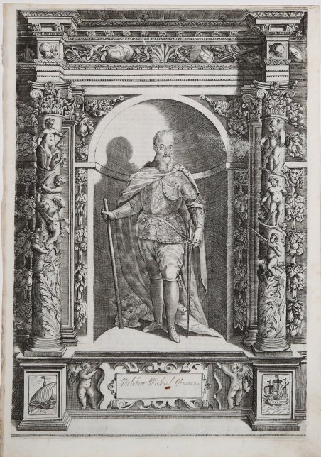 Ritratto di Melchiorre Micheli. Bulino, 1601, da Giovan Battista Fontana. Ottima prova, impressa su carta vergata coeva, con margini, in buono stato di conservazione. Testo latino al verso, prima edizione. Tavola tratta da ' Augustissimorum Imperatorum . regum . verissimae immagina… (noto anche come Armamentarium Heroicum), il catalogo della collezione di armi dell'Arciduca Ferdinando II, conservato nel castello di Ambras; venne pubblicato per la prima volta a Innsbruck nel 1601. Fu illustrato con un frontespizio e 125 ritratti di principi europei in armatura completa, inseriti in una ricca cornice ornamentale. Le lastre furono incise da Domenico Custos su disegno di Giovanni Battista Fontana. Ogni tavola era accompagnata da un breve testo biografico scritto da Jacob Schrenk von Notzing. Una traduzione tedesca del libro (di J. E. Noyse von Campenhouten) è stata pubblicata nel 1603 con il titolo Der Aller Durchleuchtigisten und Grossmächtigen Kayser, Durchleuchtigisten unnd Großmächtigen Königen[.]. Una terza edizione, comprendente 123 tavole, fu stampata a Innsbruck nel 1605. Portrait of Melchiorre Micheli, full-length, facing front, wearing armour and holding a staff in his right hand; within a niche, flanked on either side by decorated Corinthian columns. Engraving, circa 1601. A fine impression, printed on contemporary laid paper, with margins, good condition. Latin text on verso, first edition. Plate from Augustissimorum Imperatorum . regum. verissimae imagines… (also known as Armamentarium Heroicum), the catalogue of the arms collection Archduke Ferdinand II kept at Ambras castle; it was first published in Innsbruck in 1601. It was illustrated with a frontispiece and 125 portraits of European princes in full armour, with decorative surroundings. The plates were engraved by Dominicus Custos after designs by Giovanni Battista Fontana. Each plate was accompanied by a short biographical text on the former owner of the armour, written by Jacob Schrenk von Notzing. A German translation of the book (by J. E. Noyse von Campenhouten) was published in 1603 under the title Der aller Durchleuchtigisten und Grossmächtigen Kayser, Durchleuchtigisten unnd Großmächtigen Königen[.]. A third edition including 123 plates was issued in Innsbruck in 1605. Cfr. Hollstein 60.