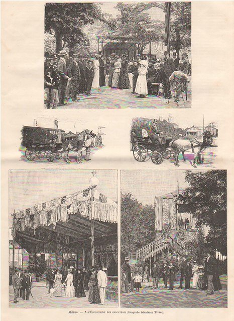 Cinque vedute esterne dell’Esposizione. Testo al retro