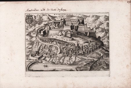 Pianta della città tratta da Heroico Splendore delle Città del Mondo, rarissima pubblicazione stampata per la prima volta a Roma nel 1639, e successivamente, ampliata con l’aggiunta di dieci nuove opere, nel 1642. In alto al centro troviamo il titolo MOMIGLIANO. A sinistra lo stemma di Carlo Emanuele I di Savoia. Lungo il bordo inferiore uno spazio vuoto. ' Giacomo Lauro, fu incisore, stampatore e conoscitore di antichità attivo prevalentemente in ambito romano tra il 1583 e il 1645. Non si conosce la data e il luogo di nascita, ma il fatto che egli firmasse le sue opere come "Jacobus Laurus Romanus" lascia presumere che fosse originario di Roma. Nulla si conosce della sua formazione. La prima testimonianza documentaria che attesta la sua presenza a Roma, in cui è definito "intagliatore di rame romano", risale al 1583; mentre la sua prima stampa conosciuta è un Tiberio con la daga (o Il gladiatore), pubblicata da Claudio Duchetti nel 1585. Nonostante abbia affrontato tematiche storiche, mitologiche, devozionali, il Lauro è noto soprattutto per la produzione di piante e vedute di città, a cominciare dalla veduta a volo d'uccello di Rocca Contrada (Arcevia), realizzata nel 1594 per Angelo Rocca su disegno di Ercole Ramazzani. Negli anni 1630-45, Lauro si dedicò alla pubblicazione di una serie di piante e descrizioni di città italiane e straniere in forma di piccoli opuscoli, alcuni dei quali furono raccolti nel 1639 sotto il titolo di Heroico splendore delle città del mondo. Le piante di Lauro, dunque, furono il frutto di un lungo lavoro di ricerca, basato su fonti primarie, e pubblicato per la prima volta in libri o opuscoli con testo relativo alla storia della città. Scrive Thomas Ashby: “Negli anni 1630-1645 il Lauro pubblicò un numero rilevante di descrizioni di città in tanti opuscoli col testo, tutti in folio piccolo oblungo. Le piante non sono tutte originali […] Molte volte sono state adoperate come fonti, s’intende, le belle tavole dell’atlante del Lafrèry. Ma anche altre piante sono state messe sotto contributo - molto è stato preso o dall’opera di Braun e Hogenberg, Civitales Orbis Terrarum, oppure anche in questo caso da fonti comuni. Non mancano i contatti con Matteo Florimi di Siena, il quale in nessun caso compì di opera propria, ma copiò sempre i lavori degli altri. La pianta di Viterbo, finalmente, è derivata dalla pianta di Tarquinio Ligustri di Viterbo, fatta nel 1596 e dedicata al Cardinale Odoardo Farnese, Alcune di queste piante furono raccolte sotto il titolo seguente, inciso nel 1639; HEROICO SPLENDORE DELLE CITTA DEL MONDO LIBRO PRIMO DI IACOMO LAURO ROMANO Dove si uedono le piante di molte Citta Ill.ri e di molte non più state alla stampa con le loro origini et atti segnalati, et quanto si estende il dominio di esse sino alli presenti tempi in Roma l’Anno di nostra salute 1639” (cfr. Thomas Ashby, L'Heroico splendore delle città del mondo, in “La Bibliofilia”, XXXI (1929), pp. 105-122). L’opera venne ristampata nel 1642 con imprint in Roma l’Anno di nostra salute 1642 /Con priuilegio del somo Pontefice, et d'altri Potent.ti Con licenza de Superiori. Sebbene nel frontespizio si parli di “Libro primo” un secondo volume della raccolta non venne mia pubblicato. Incisione in rame, stampata su carta vergata coeva, con margini, leggerissime ossidazioni, per il resto in ottimo stato di conservazione. Rarissima. Bibliografia Ashby (1929): p. 120, n. 30; Cremonini (1991): pp. 37-38, n. 41; ' Thomas Ashby, Un incisore antiquario del Seicento, I, Note intorno alla vita ed opere di Giacomo Lauro, in “La Bibliofilia”, XXVIII (1926-27), pp. 361-373; II, L'opera "Antiquae Urbis splendor", ibid., pp. 453-460; III, ibid., XXIX (1927), pp. 356-369; IV, L'Heroico splendore delle città del mondo, ibid., XXXI (1929), pp. 105-122. Map of the city taken from ' Heroico Splendore delle Città del Mondo, ' a very rare publication printed for the first time in Rome in 1639, and later, expanded with the addition of ten new works, in 1642. Giacomo Lauro, was an engraver, printer and connoisseur of antiquities active mainly in Rome between 1583 and 1645. We do not know the date and place of birth, but the fact that he signed his works as "Jacobus Laurus Romanus" suggests that he was a native of Rome. Nothing is known about his education. The first documentary evidence of his presence in Rome, in which he is defined as a "Roman copper engraver", dates back to 1583; while his first known print is a ' Tiberius with a dagger ' (or ' The Gladiator), published by Claudio Duchetti in 1585. Although he dealt with historical, mythological, devotional themes, Lauro is mainly known for the production of plans and views of cities, starting with the bird's eye view of Rocca Contrada (Arcevia), made in 1594 for Angelo Rocca on a drawing by Ercole Ramazzani. In the years 1630-45, Lauro dedicated himself to the publication of a series of maps and descriptions of Italian and foreign cities in the form of small pamphlets, some of which were collected in 1639 under the title of ' Heroico Splendore delle Città del Mondo. Lauro's plans, therefore, were the result of a long research work, based on primary sources, and published for the first time in books or pamphlets with text related to the history of the city. Thomas Ashby writes: "In the years 1630-1645 the Lauro published a considerable number of descriptions of cities in many pamphlets with text, all in small oblong folio. The plants are not all original [.] Many times have been used as sources, of course, the beautiful plates of the Atlas of Lafrèry. But other maps were also contributed - much was taken either from the work of Braun and Hogenberg, ' Civitales Orbis Terrarum, or even in this case from common sources. There is no lack of contact with Matteo Florimi of Siena, who in no case did his own work, but always copied the work of others. Some of these maps were collected under the following title, en