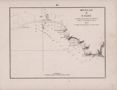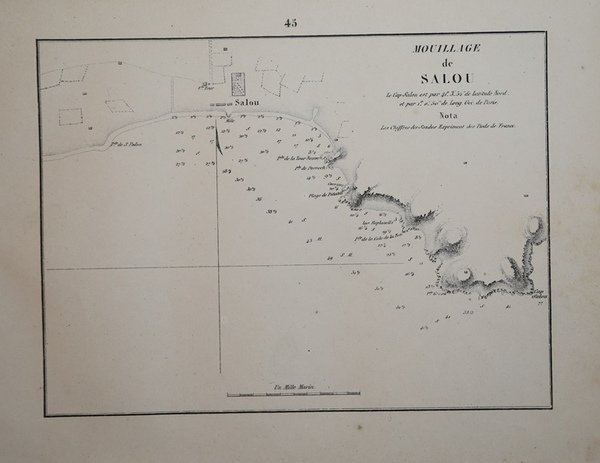 Piano nautico tratto dal raro portolano "Recueil des Plans des Ports & Rades de la Mer Méditerranée de la Mer Noire & de la Mer d'Azof" edito a Marsiglia da Joseph Maistre nel 1862 e basato sulle carte nautiche dle Depote de la Marine francese. Litografia, in buono stato di conservazione. Nautical chart taken from the rare pilot "Recueil des Plans des Ports & Rades de la Mer Méditerranée de la Mer Noire & de la Mer d'Azof" published in Marseille by Joseph Maistre in 1862 and based on the nautical charts of the French Depote de la Marine.Lithograph, very good condition. Cfr.