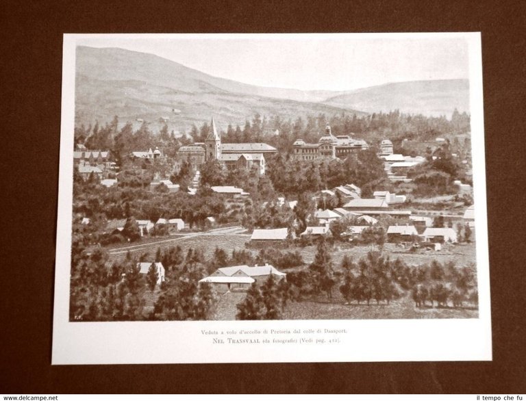 Rara stampa Estratta da Rivista d'epoca del 1899 . .stampa che ha quindi oltre 116 anni! Nel Transvaal nel 1899 Veduta di Pretoria dal Colle di Daasport Sudafrica II1899-032 Dimensioni Cm 23,00 x 18,00 Qualora vogliate delle scansioni migliori contattateci, soddisferemo ogni vostra richiesta. PaypalCarta di creditoBonifico bancario Accuratamente adagiate su un cartoncino e protette da pellicola trasparente rigida,il tutto viene inserito dentro plico di adeguate dimensioni per proteggerne l'integrità.