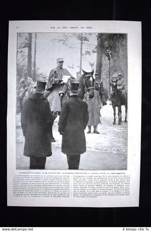 Rara stampa Estratta da pubblicazione del 1922 sulla Prima Guerra Mondiale del 1914-1918. .stampa che ha quindi oltre 95 anni! Rare print Extracted from publication of 1922 about the First World War of 1914 -1918. . press that has so over 95 years! Impression rare Extrait de la publication de 1922 sur la Première Guerre mondiale 1914-1918 . . press qui a tellement plus de 95 ans! Seltene druck Gewonnen aus der Veröffentlichung von 1922 auf dem Ersten Weltkrieg 1914-1918 . . Drücken, die so über 95 Jahren! Sur la rive droite du Rhin L'occupation de Kehl, le 30 janvier 1919: le général Hirschauer, a cheval, lisant sa proclamation + La reception de M. Wilson au Sénat francais Le déjeuner offert par le Sénat, le 20 janvier 1919, au Président Wilson, dans la salle des Conférences du Palais du Luxembourg Dimensioni Fronte/retro Cm 27,00 x 37,00+Cm 37,00 x 27,00 ADLG - 022 Qualora vogliate delle scansioni migliori contattateci, soddisferemo ogni vostra richiesta. PaypalCarta di creditoBonifico bancario La stampa verrà inserita all'interno di plico di adeguate dimensioni per proteggerne l'integrità
