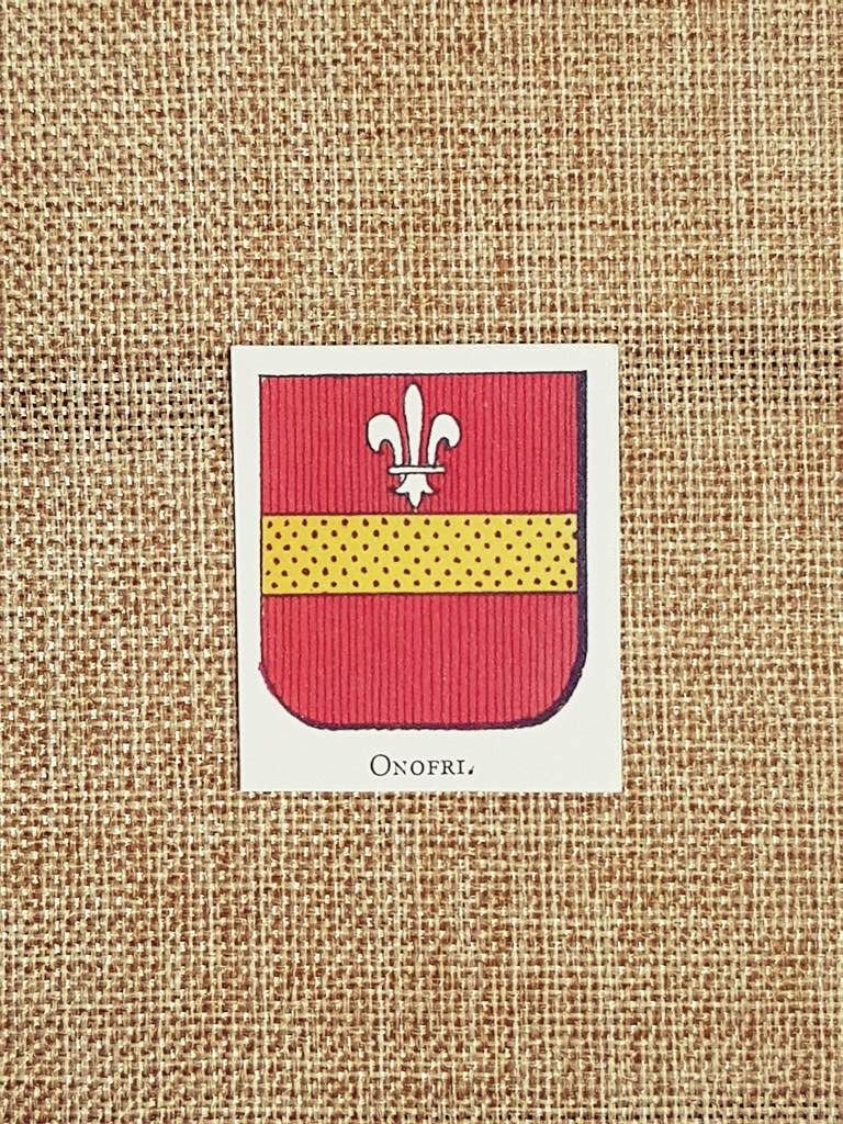 Onofri Stemma Famiglia Nobile Nobiltà Araldica Stampa del 1999 Rara stampa estratta da pubblicazione del 1999 Onofri Stemma Famiglia Nobile Nobiltà Araldica Codice prodotto: S.I. - 060 Dimensioni: Cm 3,50 x 4,00