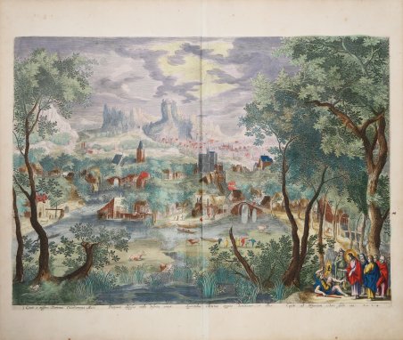 Bulino, 1614 circa, firmato in basso nell'immagine: David Vinckboons inventor; Joannes Londerseel sculpsit. ' And ' CIVisscher excudit. Nel margine inferiore: ' Ejicit è misero Dominus cacodemonia muto. Protimus obsessus verba diferta sonat. Spiritibus Christus stygiis dominatur, et illos cogit ad imperium cedre fede sua. Luce. 14 Da un soggetto di David Vinckboons. La scena è ispirata al quattordicesimo capitolo del Vangelo di Luca, in cui è narrato il miracolo della guarigione di un idropico compiuto da Gesù Cristo in un giorno di sabato. Magnifica prova, finemente acquerellata da mano contemporanea, impressa su carta vergata coeva con filigrana “stemma araldico con giglio”, con margini, consueta traccia di piega verticale centrale, in eccellente stato di conservazione. L’eccelsa qualità della coloritura a mano distingue e impreziosisce questo esemplare dalle prove in bianco e nero. Engraving, 1614 circa, signed lower in the image David Vinckboins inventor; Joannes Londerseel sculpsit. And CIVisscher excudit. Lettered in lower margin: Ejicit è misero Dominus cacodemonia muto. Protimus obsessus verba diferta sonat. Spiritibus Christus stygiis dominatur, et illos cogit ad imperium cedre fede sua. Luce. 14 The scene appears to show Christ healing the insane on the Sabbath, according Luke. 14. After a subject by David Vinckboons. Magnificent proof, splendid contemporary hand-colouring, printed on contemporary laid paper, watermark "coat of arms with fleur-de-lis", with margins, usual trace of central vertical fold, in very good condition. The excellent quality of the colouring significantly distinguishes and enhances these examples from those in black and white. Cfr. Hollstein 20