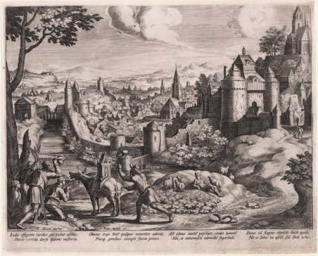 Bulino, circa 1599, firmato in basso al centro. Da un soggetto di Hans Bol. Stato unico. Bellissima prova, impressa su carta vergata coeva priva di filigrana, sottili margini, leggere abrasioni all’angolo inferiore destro, nel complesso in buono stato di conservazione. Engraving, 1599 approx, signed on lower centre. After a subject by Hans Bol. Magnificent work, printed on contemporary laid paper without watermark, thin margins, small abrasions on lower right corner, in general in good condition. Cfr. Hollstein 564.