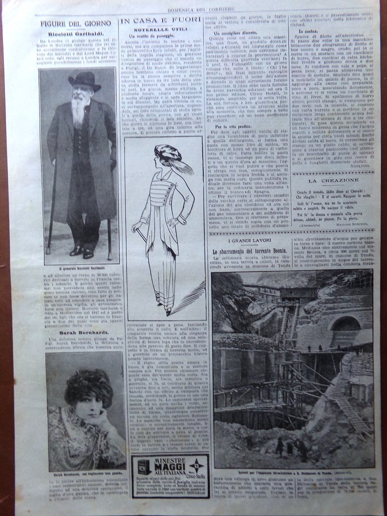 Pagine del 1915 WW1 Generale Ricciotti Garibaldi Sarah Bernhardt Torrente Beonia
