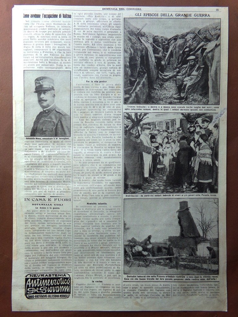 Pagine del 1915 WW1 Occupazione Valona Mosca Trincee Tedesche Cibo Donna Guerra