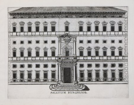 Veduta tratta dalla rarissima serie Palazzi divesi nel'Alma Cità di Roma et altre, pubblicata per la prima volta a Roma: ad instanza di Giombattista de Rossi in piazza Nauona, 1638. La raccolta venne successivamente ristampata nel 1640, 1650 e nel 1655 sempre a cura della tipografia De Rossi e anche nel 1773 da Carlo Losi. Esemplare dell'edizione originale del 1638. L'opera comprende incisioni di famosi palazzi romani e non, incluse diverse vedute della Piazza San Marco di Venezia, la Certosa di Pavia, il Santuario di Loreto. Acquaforte e bulino, in ottimo stato di conservazione. View taken from the very rare set Palazzi divesi nel'Alma Cità di Roma et altre, published for the first time in Rome: ad instanza di Giombattista de Rossi in Piazza Nauona, 1638. The collection was subsequently reprinted in 1640, 1650 and 1655 always by the De Rossi typography and also in 1773 by Carlo Losi. Example of the original edition of 1638. The work includes engravings of famous palaces in Rome and elsewhere, including several views of Piazza San Marco in Venice, the Certosa of Pavia, the Sanctuary of Loreto. Etching and angraving, in excellent condition. Cfr.