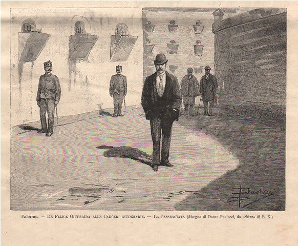 Veduta del deputato Giuseppe de Felice Giuffrida (Catania 1859 - Catania 1920) in carcere; considerato uno degli organizzatori dei Fasci dei lavoratori in Sicilia fu arrestato e condannato a 18 anni di carcere dal tribunale militare di Palermo. Testo al retro