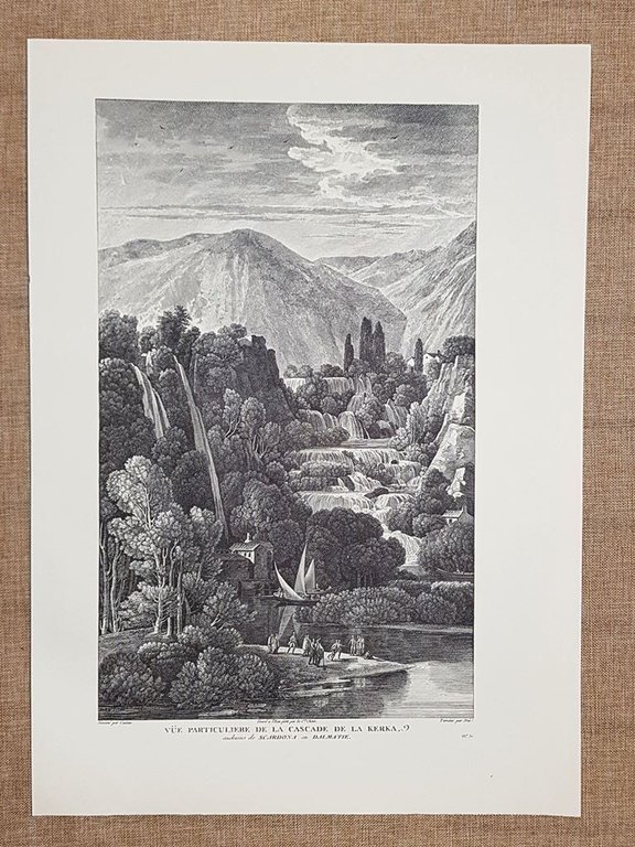 Particolare delle Cascate di Kerka o Krka Scardona Crozia Anno 1802 Ristampa Rara tavola estratta da pubblicazione del 1974 Stampata su carta pregiata e non retroscritta Particolare delle Cascate di Kerka o Krka Scardona Croazia Codice prodotto: Litografie - 1954 Ristampa anastatica di una celebre tavola del 1802 contenuta nella rara e pregiata opera Voyage pittoresque et historique de l'Istrie et Dalmatie redige d'apres l'itineraire de L. F. Cassas par Joseph Lavallee Pubbicata in Francia nel 1802 Dimensioni: Cm 35,00 x 50,00