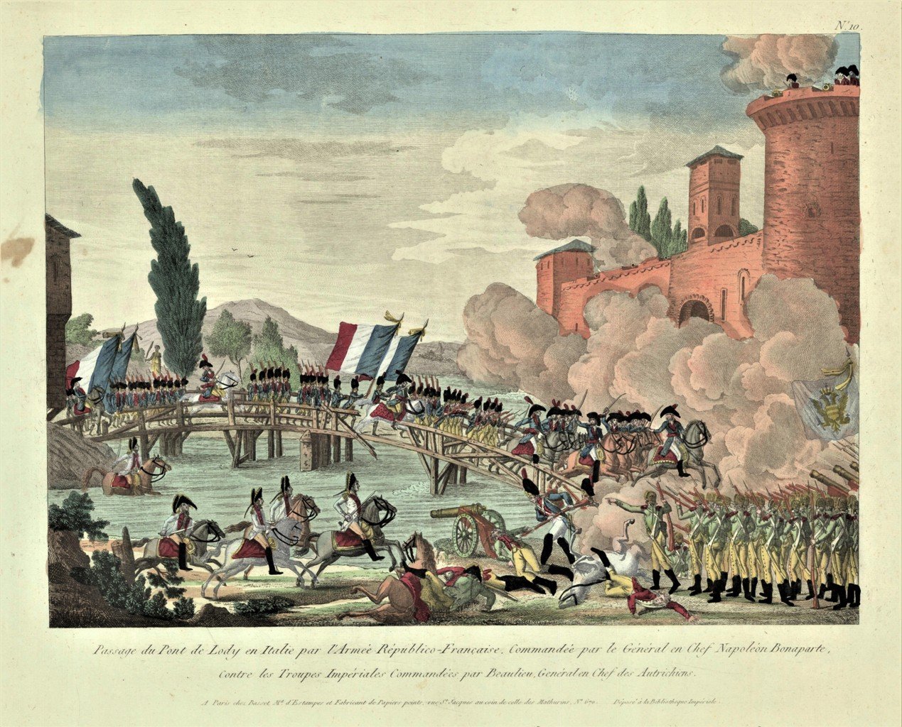 Passage du Pont de Lody en Italie par l'Armée Républico-Francaise. Commandée par le Général en Chef Napoléon Bonaparte.