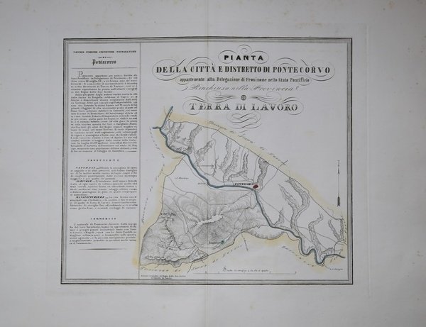 Pianta della città e distretto di Pontecorvo appartenente alla Delegazione di Frosinone nello Stato Pontificio Rinchiusa ne