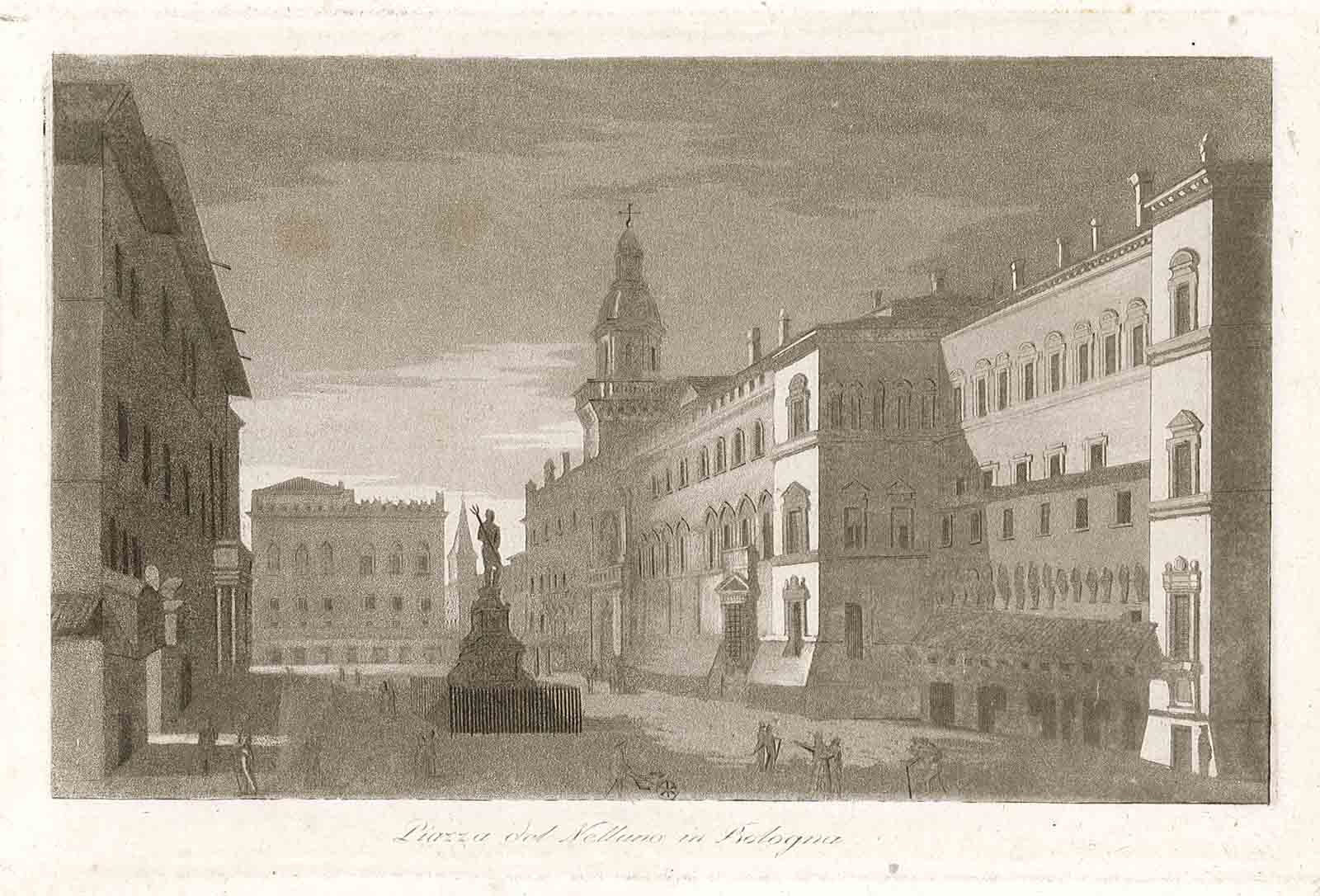 Veduta della piazza, e della statua di Nettuno