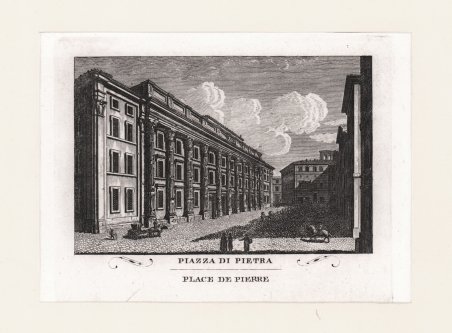 Veduta tratta dalla celebre guida di Roma di Mariano Vasi, ' ITINERARIO ISTRUTTIVO DI ROMA ANTICA E MODERNA, OVVERO DESCRIZIONE GENERALE DEI MONUMENTI ANTICHI E MODERNI, E DELLE OPERE LE PIU INSIGNI DI PITTURA, SCULTURA, ED ARCHITETTURA DI QUESTA ALMA CITTÀ E DELLE SUE ADIACENZE DI MARIANO VASI [.]. TOMO I [- II]. NUOVA EDIZIONE CORRETTA, ACCRESCIUTA ED ARRICCHITA DI RAMI DAL MEDESIMO AUTORE. L’opera venne pubblicata per la prima volta in Roma, presso Lazzarini nel 1804, e quindi ristampata nella prima metà del XIX secolo. Esemplare tratto dall’edizione del 1820, con complessivamente 90 tavole calcografiche f.t. (ritratto di Pio VII, 2 piante topografiche incise ripiegate e 47 tavv. di vedute nel primo volume, 40 tavv. di vedute nel secondo). Mariano Vasi è stato un editore e imprenditore italiano nel campo della calcografia. Mariano è figlio del noto incisore di origine siciliana Giuseppe Vasi. Privo di una personalità artistica autonoma e definita, Mariano affiancò il padre nella bottega calcografica, situata al piano terreno di Palazzo Farnese, a Roma. Alla morte del padre, nel 1782, Mariano continuò a pubblicarne le opere, comprese le ' Magnificenze di Roma antica e moderna, ' incaricando vari artisti - in genere di modesta levatura - di modificarle o di dipingerle all'acquarello, laddove necessario. Mariano inoltre continuò a pubblicare e ad aggiornare le guide turistiche scritte dal padre, prima fra tutti ' l'Itinerario Istruttivo ' diviso in otto giornate. Nella parte finale della carriera egli aprì una libreria in via del Babuino, a Roma. ' Acquaforte, in buono stato di conservazione. View taken from the famous guide to Rome by Mariano Vasi, ' ITINERARIO ISTRUTTIVO DI ROMA ANTICA E MODERNA, OVVERO DESCRIZIONE GENERALE DEI MONUMENTI ANTICHI E MODERNI, E DELLE OPERE LE PIU INSIGNI DI PITTURA, SCULTURA, ED ARCHITETTURA DI QUESTA ALMA CITTÀ E DELLE SUE ADIACENZE DI MARIANO VASI [.]. TOMO I [- II]. NUOVA EDIZIONE CORRETTA, ACCRESCIUTA ED ARRICCHITA DI RAMI DAL MEDESIMO AUTORE. The work was published for the first time in Rome, by Lazzarini in 1804, and then reprinted in the first half of the nineteenth century. Exemplar taken from the edition of 1820, with a total of 90 intaglio plates (portrait of Pius VII, 2 topographical plans engraved folded and 47 tables of views in the first volume, 40 tables of views in the second). Mariano Vasi was an Italian publisher and entrepreneur in the field of intaglio. Mariano is the son of the famous engraver of Sicilian origin Giuseppe Vasi. Lacking an autonomous artistic personality and defined, Mariano joined his father in the intaglio workshop, located on the ground floor of Palazzo Farnese in Rome. At the death of his father, in 1782, Mariano continued to publish his works, including the ' Magnificenze di Roma antica e moderna, ' (Magnificences of ancient and modern Rome), commissioning various artists - usually of modest standing - to modify them or to paint them in watercolor, where necessary. Mariano also continued to publish and update the tourist guides written by his father, first and foremost the ' Itinerario Istruttivo ' divided into eight days. In the final part of his career, he opened a bookstore in Via del Babuino, in Rome. ' Etching, in good condition. Cfr.
