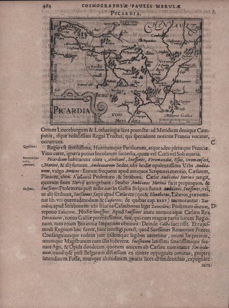 Carta tratta dalla prima edizione della "Cosmographia Universalis" di Paul Merula , stampata ad Amsterdam nel 1605. Le mappe usate per illustrare la prima edizione della Cosmografia di Merula sono realizzate nel 1598 da Jodocus Hondius e Pieter Van den Keere (Kaerius) e quidni utilizzate dall'editore Cornelis Claesz per illustrare lavori di Apian, Linschoten e Merula. Incisione in rame, inserita uin una pagina di testo, in perfette condizioni. Taken from the first edition of "Cosmographia Universalis" by Paul Merula, printed in Amsterdam in 1605.The map was first issued in 1598 by Cornelis Claesz and engraved and realized by Jodocus Hondius and Pietre vand den Keere (Kaerius). Claesz used the plate to illustrate various works he published by Peter Apian, Jan van Linschoten, Paul Merula and others. Copperplate, inset in a page text, very good conditions. Cfr. King pp. 80/81
