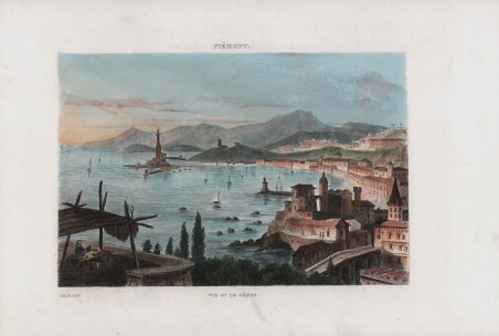 Veduta tratta da ' L'Italie pittoresque [.]. Gravures sur acier d'après les dessins de madame D'Haubecourt-Lescot, de Mm. le Comte de Forbin, Granet, Deveria… ' edita a Parigi dal 1834 al 1836. Bella guida sull'Italia, pubblicata per la prima volta nel 1834, composta dei racconti di personaggi come Norvins, Nodier, Dumas, Berlioz (autore del capitolo Voyage musicale) e altri con le belle incisioni in acciaio da disegni di madame D'Haubecourt-Lescot, del conte de Forbin, Granet, Deveria ecc. Incisione in rame, in ottimo stato di conservazione. Cfr.