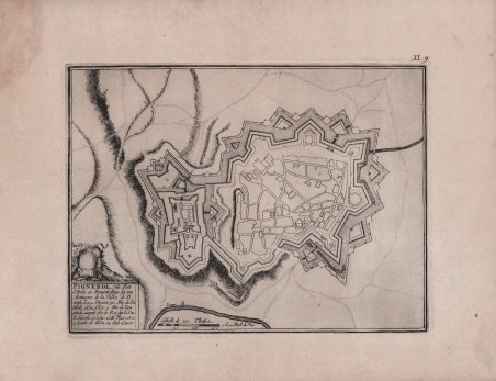 Carta geografica tratta da ' Les forces de l’Europe ou description des principals villes… ' Paris: Chez l'Auteur, 1693-1696 ' celebre raccolta composta da otto parti in un volume, in folio oblungo. Les Forces de l’Europe ' è un noto atlante militare francese; prevalentemente si tratta di mappe, piani e vedute di fortificazioni di città europee in Francia, Germania e Paesi Bassi, l'atlante include anche una serie di altre regioni, tra cui Malta, Costantinopoli, Tripoli e altrove. Nicolas de Fer (1646-1720) è stato uno dei più grandi cartografi, incisori ed editori del XVII secolo. Il padre, Antoine de Fer, era un modesto mercante di stampe che lavorava sull’Ile del la Cité a Parigi; collaborò con Nicolas I Berey, poi con Melchior Tavernier e, quindi, con Jacques Lagnet. Nel 1652 Antoine adotta l’insegna commerciale della “Sphére royale”, già appartenuta a Tavernier; nel 1657 stampa ' Cartes de géographie, una piccola raccolta tascabile di Pierre Duval. Nel 1667 si firmava “merchand de cartes Gèographique”; proseguì l’attività fino al 1686, quando lasciò la tipografia nelle mani del figlio Nicolas, che aveva fatto da apprendista all’incisore parigino Louis Spirinx e aveva già realizzato la sua prima mappa del Canal du Midi, all’età di soli 23 anni. Nel 1689 realizzò una mappa della Franche-Comté per onorare il Grand Dauphine - Luigi di Francia (1661-1711), primogenito ed erede del re Luigi XIV di Francia, impegnato al comando di una campagna di conquistare di nuovi territori sul Reno. In seguito, venne nominato geografo ufficiale del Delfinato e la sua produzione fu strettamente legata agli interessi della corona francese: ad esempio, ' Forces De L’Europe Ou Introduction A La Fortification, pubblicato nel 1695, che mostrava le nuove fortificazioni progettate dall’innovativo ingegnere francese Sébastien de Vauban. Fu il geografo ufficiale anche di Filippo V e Luigi XIV (entrambi i rami francese e spagnolo della Casa di Borbone) e infine, nel 1720, del Papa. De Fer pubblicò l’Atlas curieux où le Monde représenté dans les cartes générales et particulièrs du Ciel et de ' la Terre ' tra il 1700 e il 1705, aggiungendo ogni volta delle nuove tavole geografiche. La sua opera più maestosa rimane l’Atlas Royal, dans l’Isle du Palais sur le Quay de l'Orloge a la Sphere royale ' (1693). Alla sua morte, l’attività fu ereditata da suo genero Guillaume Danet, che si unì poi con Jacques-François Benard. Acquaforte, in buono stato di conservazione. Map from ' Les forces de l'Europe ou description des principals villes ' . Paris: Chez l'Auteur, 1693-1696 ' famous collection consisting of eight parts in one volume, oblong folio. Les Forces de l'Europe ' is a well-known French military atlas; predominantly maps, plans and views of fortifications of European cities in France, Germany and the Netherlands, the atlas also includes a number of other regions, including Malta, Constantinople, Tripoli and elsewhere. Nicolas de Fer (1646-1720) was one of the greatest cartographers, engravers and publishers of the 17th century. His father, Antoine de Fer, was a modest print merchant working on the Ile del la Cité in Paris; he collaborated with Nicolas I Berey, then with Melchior Tavernier, and then with Jacques Lagnet. In 1652 Antoine adopted the "Sphére royale" trade sign, which had already belonged to Tavernier; in 1657 he printed ' Cartes de géographie, a small pocket collection by Pierre Duval. In 1667 he signed himself "merchand de cartes Gèographique"; he continued the business until 1686, when he left the print shop in the hands of his son Nicolas, who had been apprenticed to Parisian engraver Louis Spirinx and had already made his first map of the Canal du Midi, at the age of only 23. In 1689 he made a map of Franche-Comté to honor the Grand Dauphine - Louis of France (1661-1711), eldest son and heir of King Louis XIV of France, who was engaged in commanding a campaign to conquer new territories on the Rhine. He was later appointed official geographer of the Dauphiné, and his output was closely linked to the interests of the French crown: for example, ' Forces De L'Europe Ou Introduction A La Fortification, published in 1695, which showed the new fortifications designed by the innovative French engineer Sébastien de Vauban. He was also the official geographer of Philip V and Louis XIV (both the French and Spanish branches of the House of Bourbon) and finally, in 1720, of the Pope. De Fer published theAtlas curieux où le Monde représenté dans les cartes générales et particulièrs du Ciel et de la Terre ' between 1700 and 1705, adding new geographical plates each time. His most majestic work remains the ' Atlas Royal, dans l'Isle du Palais sur le Quay de l'Orloge a la Sphere royale ' (1693). Upon his death, the business was inherited by his son-in-law Guillaume Danet, who later joined forces with Jacques-François Benard. Etching, very good condition. Cfr.