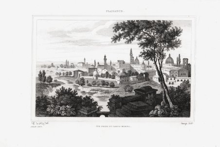 Veduta tratta dal ' L'Italie pittoresque [.]. Gravures sur acier d'après les dessins de madame D'Haubecourt-Lescot, de Mm. le Comte de Forbin, Granet, Deveria… ' edita a Parigi dal 1834 al 1836. Bella guida sull'Italia, pubblicata per la prima volta nel 1834, composta dei racconti di personaggi come Norvins, Nodier, Dumas, Berlioz (autore del capitolo Voyage musicale) e altri con le belle incisioni in acciaio da disegni di madame D'Haubecourt-Lescot, del conte de Forbin, Granet, Deveria ecc. ' Incisione in rame, in ottimo stato di conservazione. View taken from ' L'Italie pittoresque [.]. Gravures sur acier d'après les dessins de madame D'Haubecourt-Lescot, de Mm. le Comte de Forbin, Granet, Deveria[.], ' published in Paris from 1834 to 1836. A beautiful guide to Italy, first published in 1834, consisting of the accounts of such people as Norvins, Nodier, Dumas, Berlioz (author of the chapter entitled ' Voyage musicale) and others with beautiful steel engravings from drawings by Madame D'Haubecourt-Lescot, the Comte de Forbin, Granet, Deveria, etc. Copperplate, ' in excellent condition. Cfr.